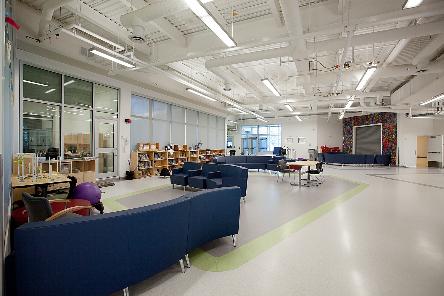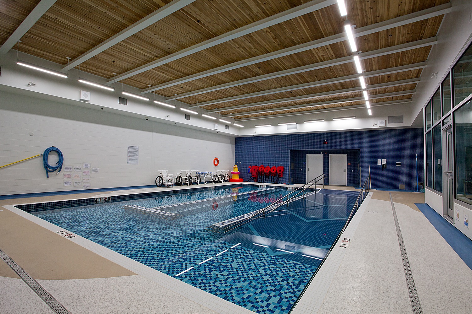 Christine Meikle School provides education for grades 7 to 12 students who have moderate to severe developmental disabilities and learning, medical, and emotional needs. The original school facility was not designed to accommodate the specialized school program or the highly specialized equipment required to serve the students, which resulted in the need for a replacement school. The replacement school includes highly secure areas throughout the learning commons, a specialized indoor saltwater therapy pool, gymnasium, and accessible courtyard spaces.