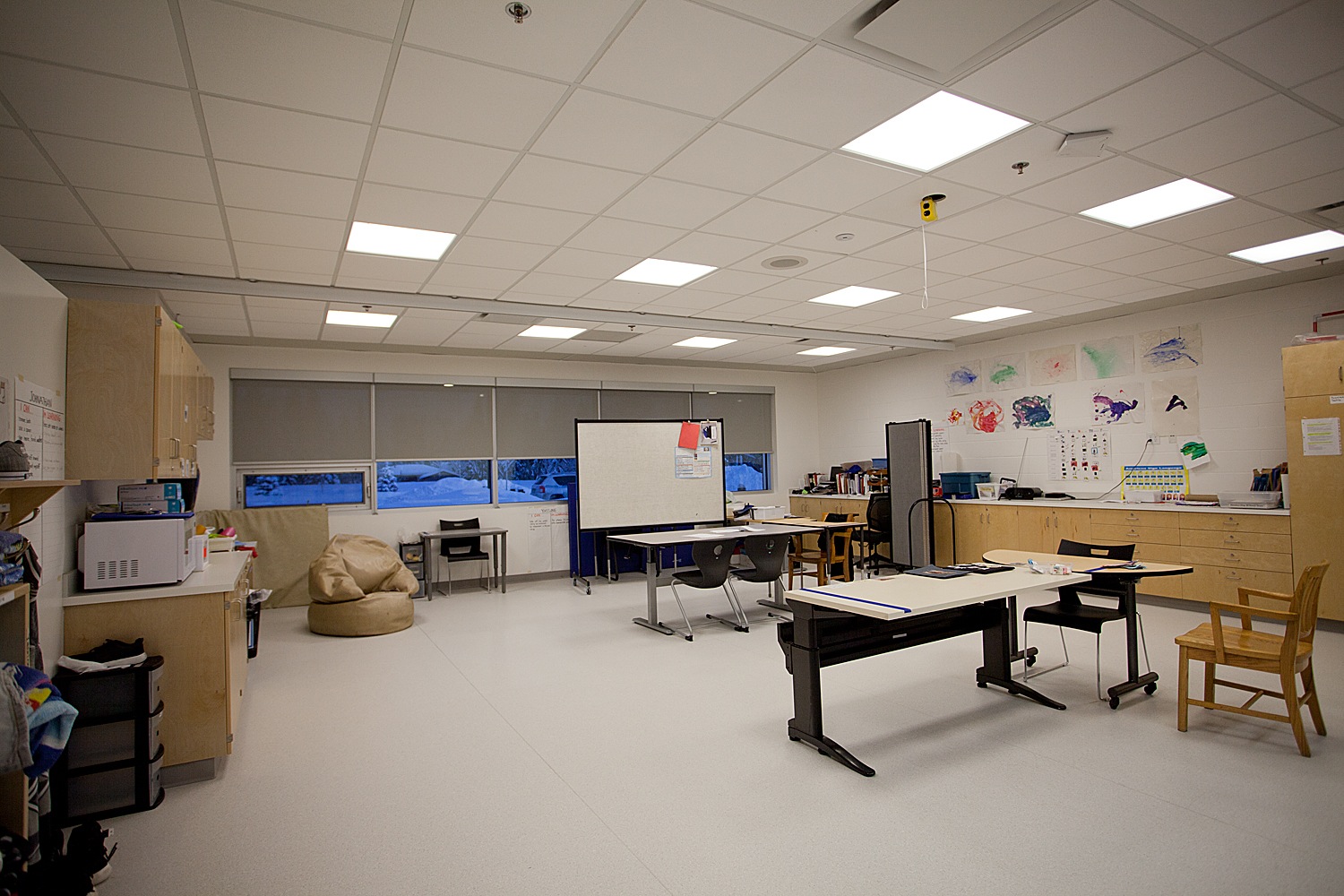 The power and data requirements of the students at this school surpassed the typical design standards of the school board. Through site investigation and discussions with users, SMP determined that power and data layouts providing immense flexibility for students was essential. This would allow teachers to tailor each room to the needs of the students. Whether it was powering a mobile interactive whiteboard or charging a wheelchair for a medically fragile student, special consideration was given to providing electricity where needed within the building.