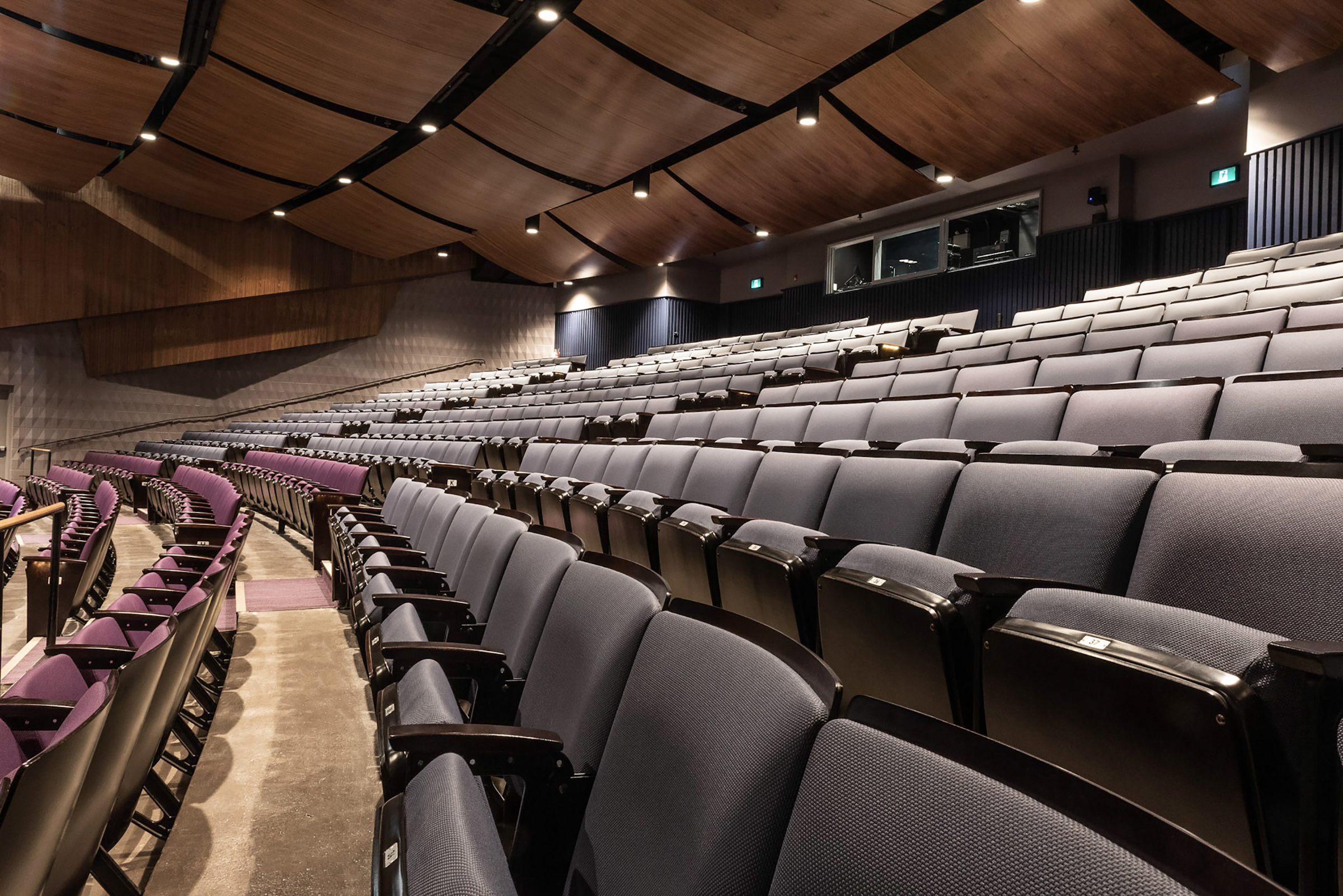 The Genevieve E. Yates Memorial Centre in Lethbridge, AB is a performing arts centre originally built in 1966. This $13.96M renovation addressed many operating components that had reached end-of-life, including upgrades to security, audio visual systems, and complete theatre lighting systems, including motorized stage hoists. The theatre lighting upgrade for both the Yates and Sterndale Bennett Theatre involved green room lighting, auditorium lighting, and stage lighting. In addition, the building received an updated sprinkler system, A/V system with state-of-the-art sound boards, exterior display screens for upcoming productions, lighting control panels, and new accessibility additions including elevators, automatic door operators, and barrier-free washrooms.