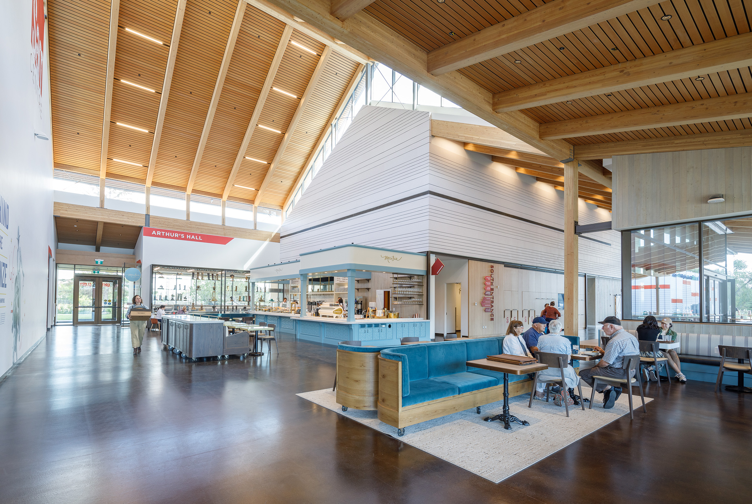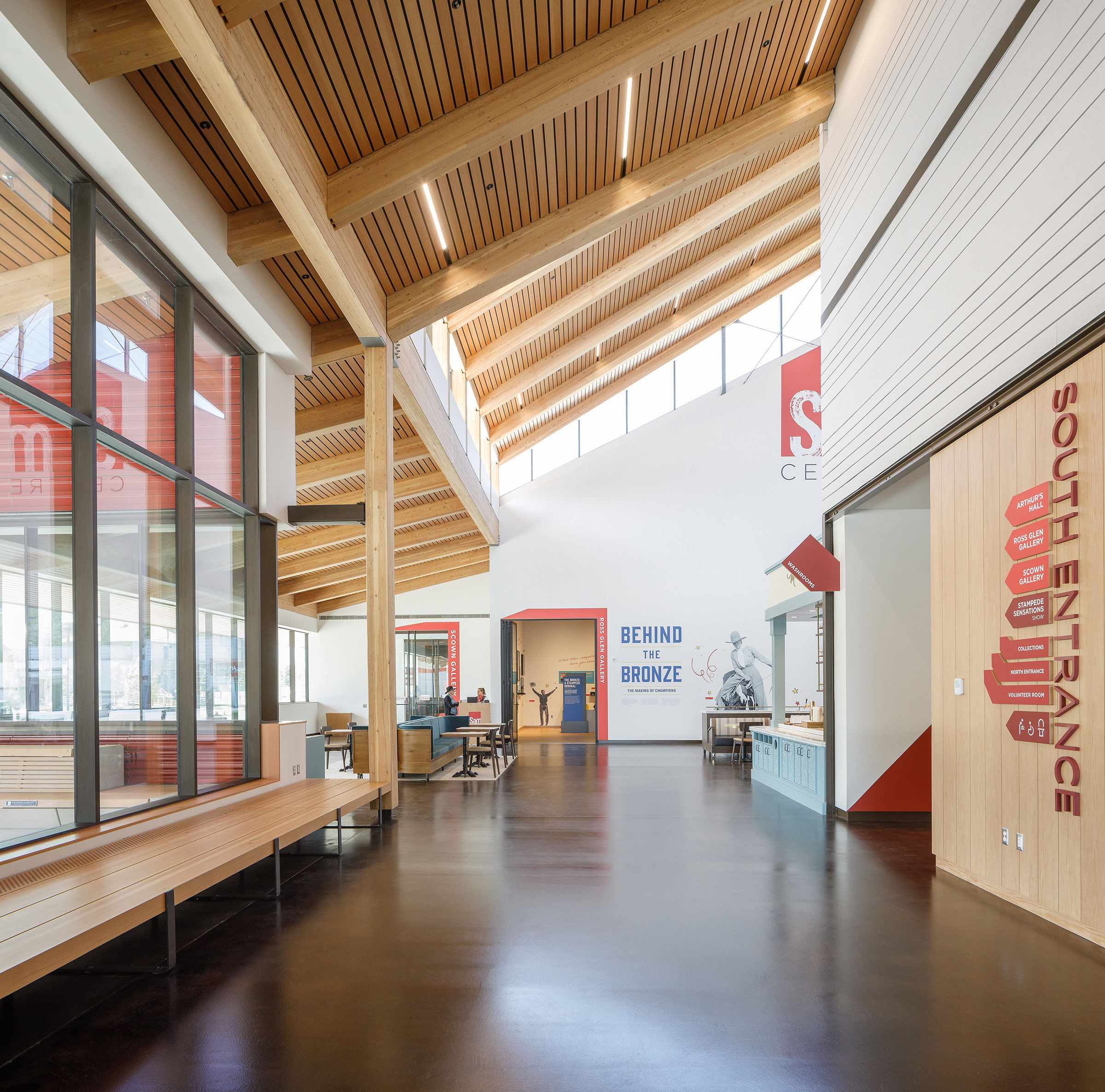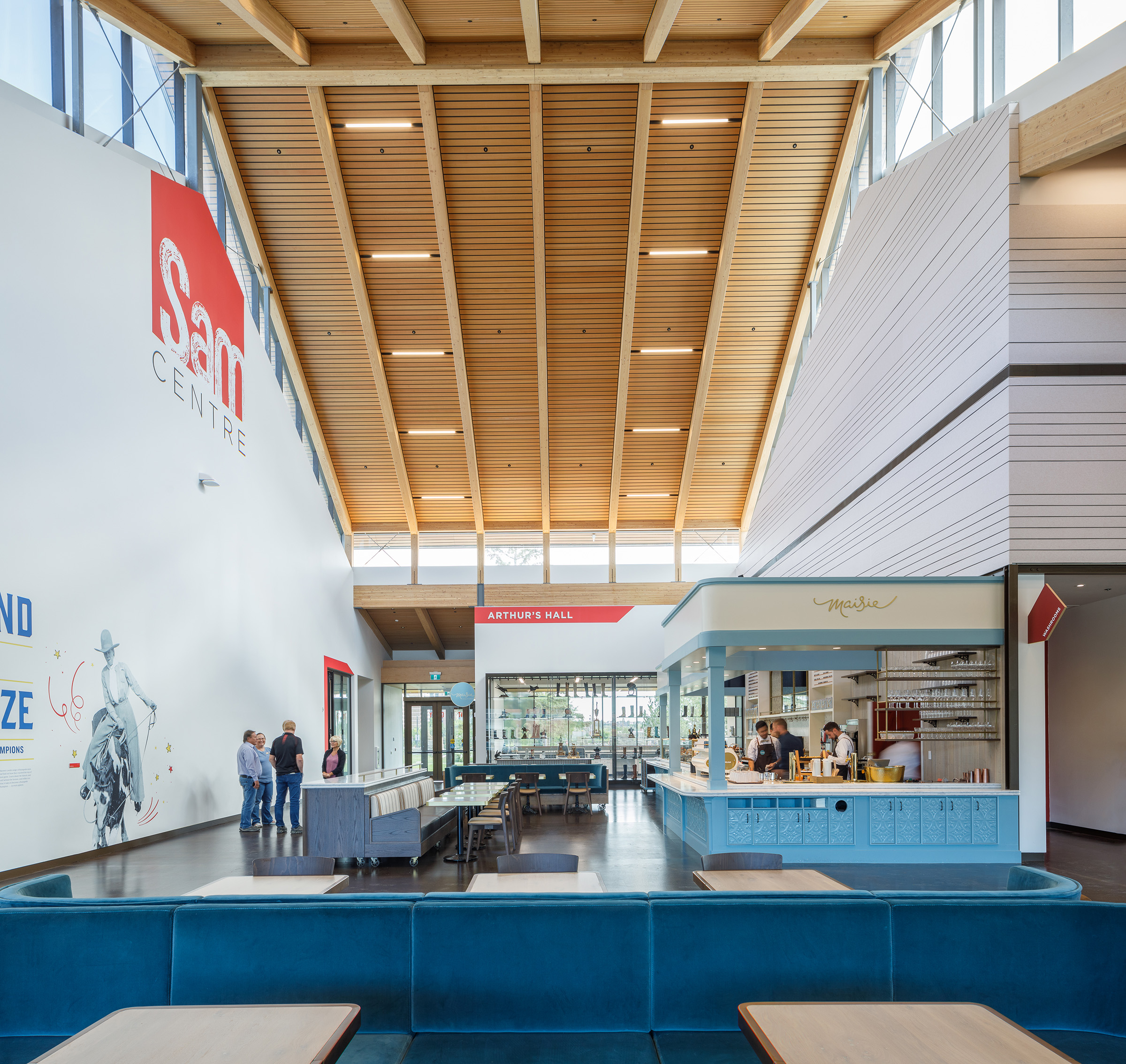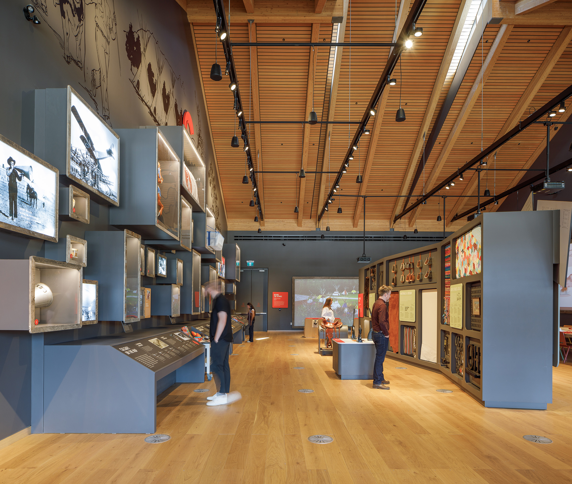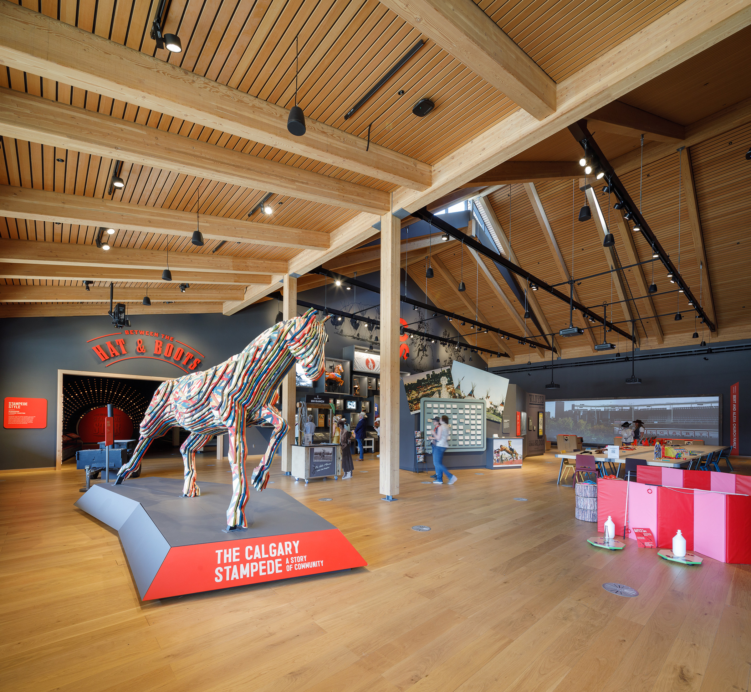The SAM Centre, located in the heart of Stampede Park in Calgary, is a 30,000 ft2 immersive experience bringing the rich history and vibrant spirit of the Calgary Stampede to life. Opening in 2024, this community-focused, 21st-century learning space connects people by sharing over 100 years of Stampede memories through interactive exhibits, multimedia displays, and captivating storytelling. Visitors can explore artifacts, participate in hands-on activities, and create their own Stampede stories. Designed with three core focuses—storymaking, archives and collections, and support—the centre features sustainable elements, a striking "lantern" centerpiece, and offers a unique blend of western heritage, modern technology, and community connection for locals and tourists alike.
