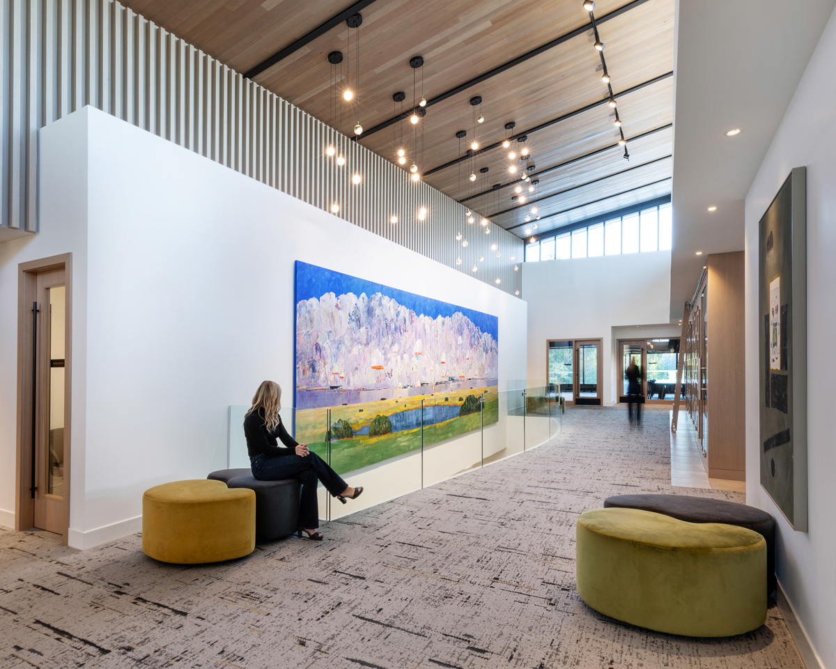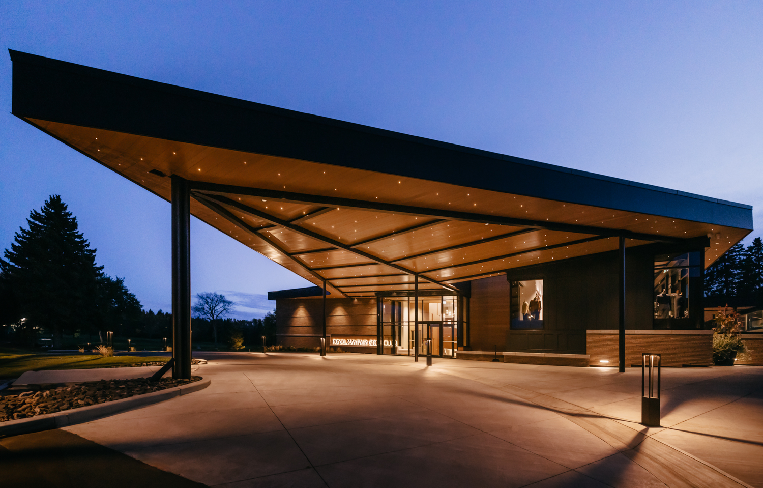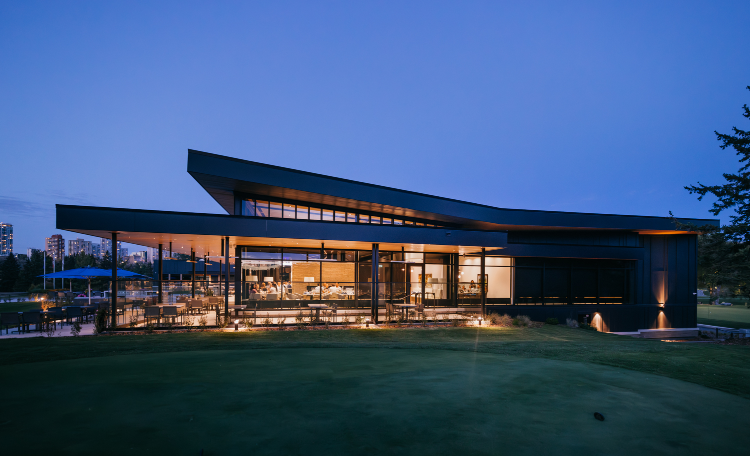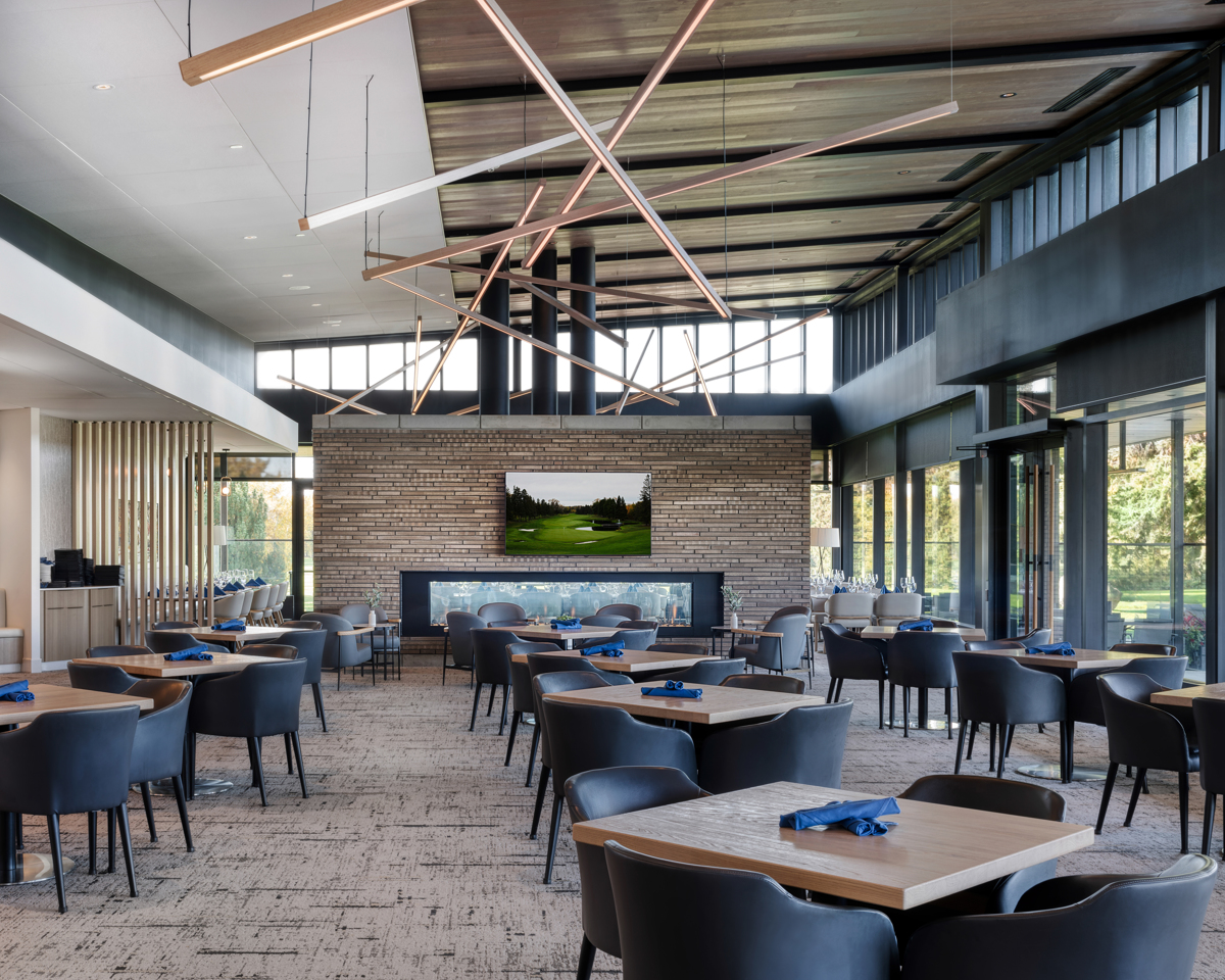 Completed in June 2023, this $16M facility revitalization features a new two-level clubhouse, pro shop, event space, and member fitness area. Our scope included a comprehensive interior lighting design, featuring a blend of decorative fixtures, recessed downlights, glass globes, and accent lighting to create a warm, inviting atmosphere. The exterior lighting design enhances the experience with micro-LED luminaires scattered across the entrance soffit and patio, evoking a whimsical starry night effect. Additionally, the clubhouse integrates a 40kW rooftop solar photovoltaic array, designed by SMP to optimize energy efficiency and sustainability.